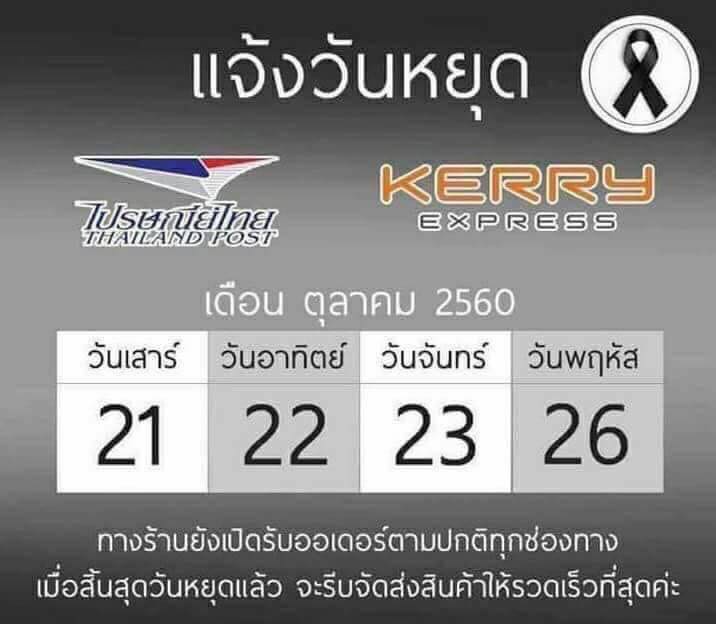 ประกาศไปรษณีย์หยุด 21-23 ตุลาคม 2560 นะคับ