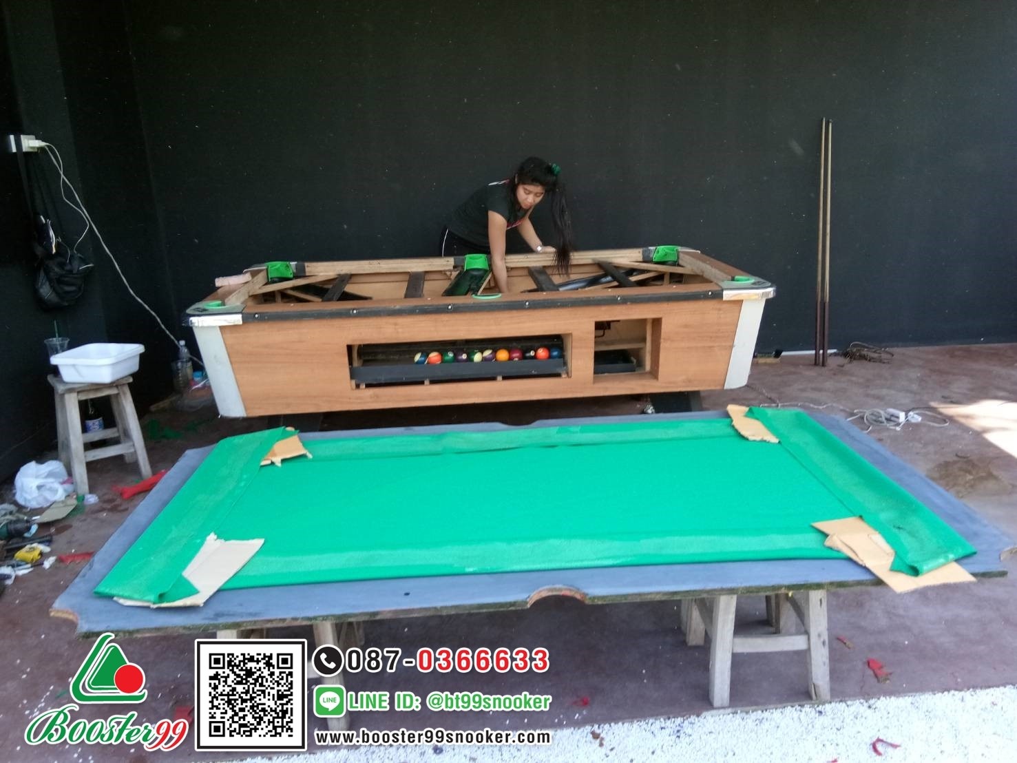 งานบริการเปลี่ยนผ้าโต๊ะพูล 7 ฟุต ตั้งระดับโต๊ะพูล เปลี่ยนยางชิงพูล ทำความสะอาดทั้งภายนอกและภายใน และเซทระบบภายในใหม่ ขอขอบคุณร้าน BAOWHAN CAFE ที่ไว้วางใจใช้บริการร้านบูสเตอร์ 99 สนุ้กเกอร์ คับ