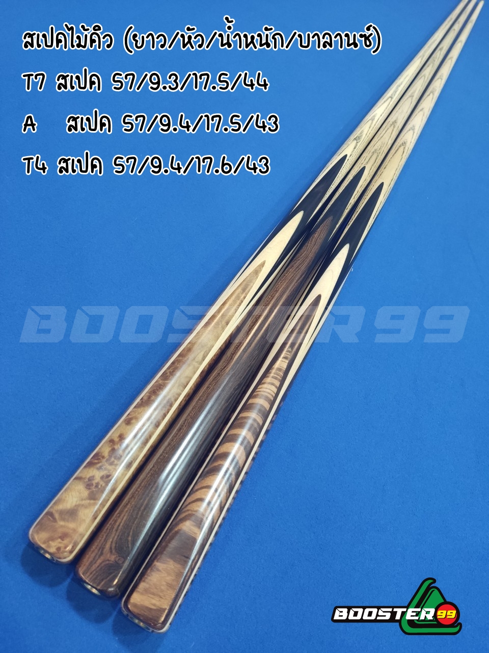 ไม้คิวสั่งทำมาตรฐานไทย ควบคุมการผลิตโดย booster99 เพื่อให้ไม้คิวมีคุณภาพที่ดี เหมาะกับคนไทย ในราคาไม่แพงและสวยงาม